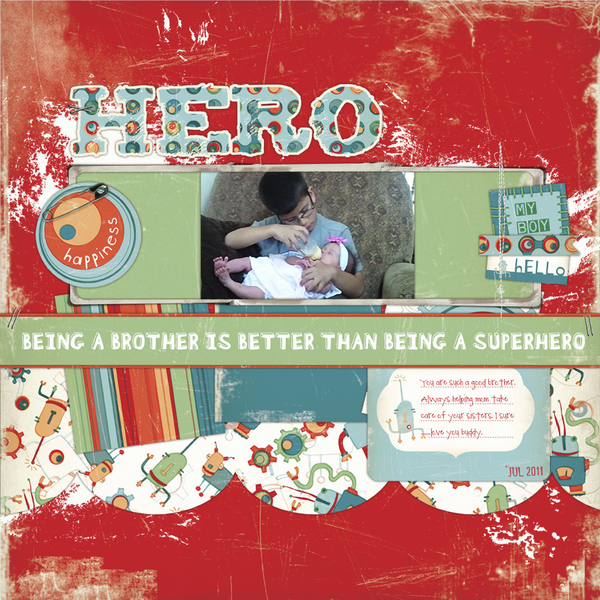 Monica turned my paint swashes white and used them to give her layout that awesome “messy” look, perfect for adding that “boyish” feel to her wonderful layout Β (“Messy” in quotes because as you can see, everything is really perfectly put together!)