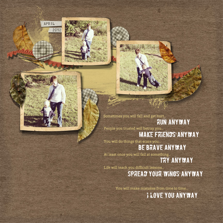 The mini kit that comes with it is always chock-filled with goodies, complete with papers and elements that coordinate perfectly. You can use them on the template itself, and you can also use them separately on other layouts that you make… thereby building your goody-stash with wonderful additions!