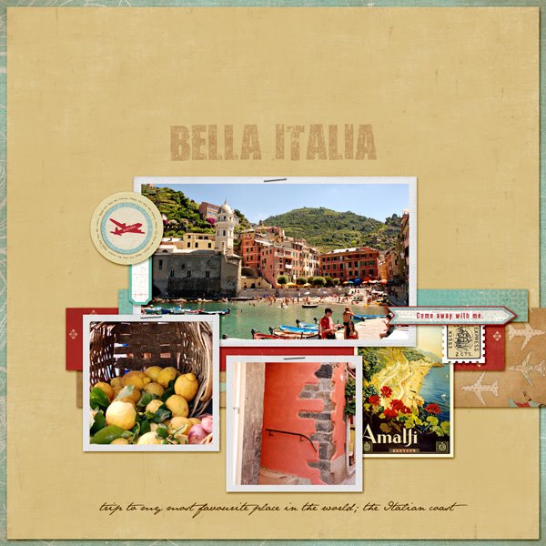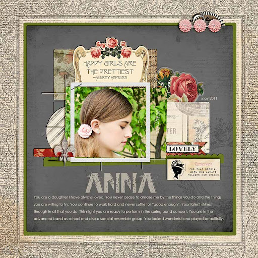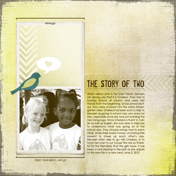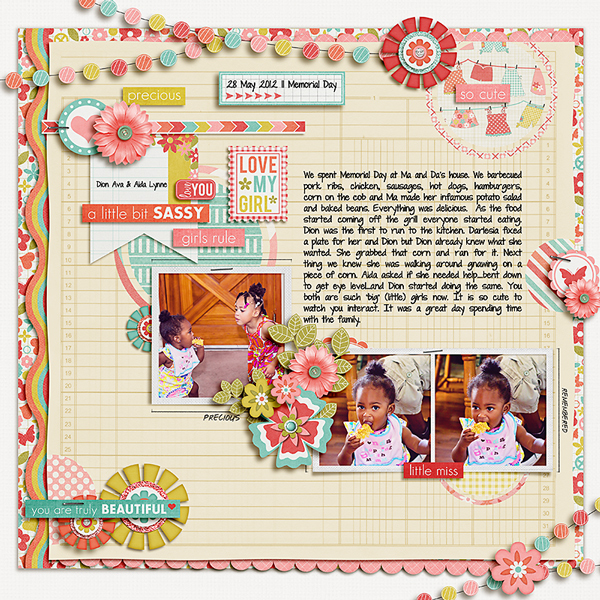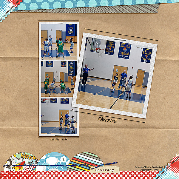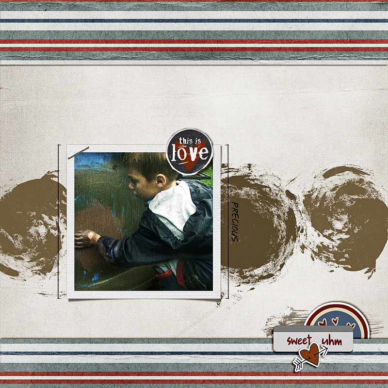 The mini kit that comes with it is always chock-filled with goodies, complete with papers and elements that coordinate perfectly. You can use them on the template itself, and you can also use them separately on other layouts that you make… thereby building your goody-stash with wonderful additions!